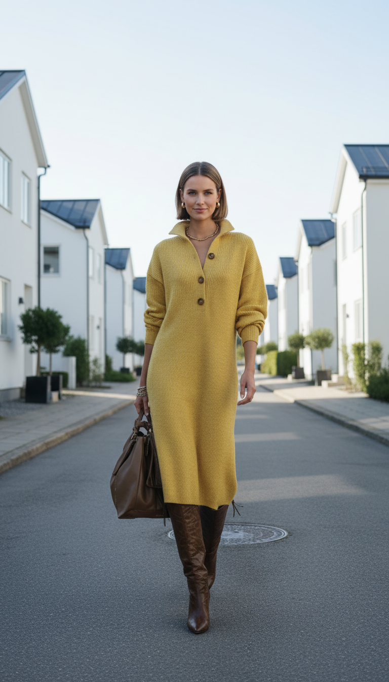 En tidlös midiklänning i mjuk sammet med draperad detalj som formar sig naturligt längs kroppen. En enkel, elegant siluett för både vardag och kväll.